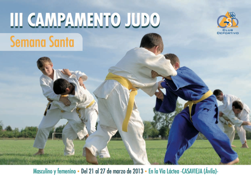 7 mar 2013 Preparado ya para el próximo Campamento… El último fin de semana de este mes se celebra el III CAMPAMENTO DE JUDO al que no pienso faltar. Deseando ya que llegue y más hoy que ha publicado oficialmente por el Club Deportivo GSD en su web. Aquí, el programa: