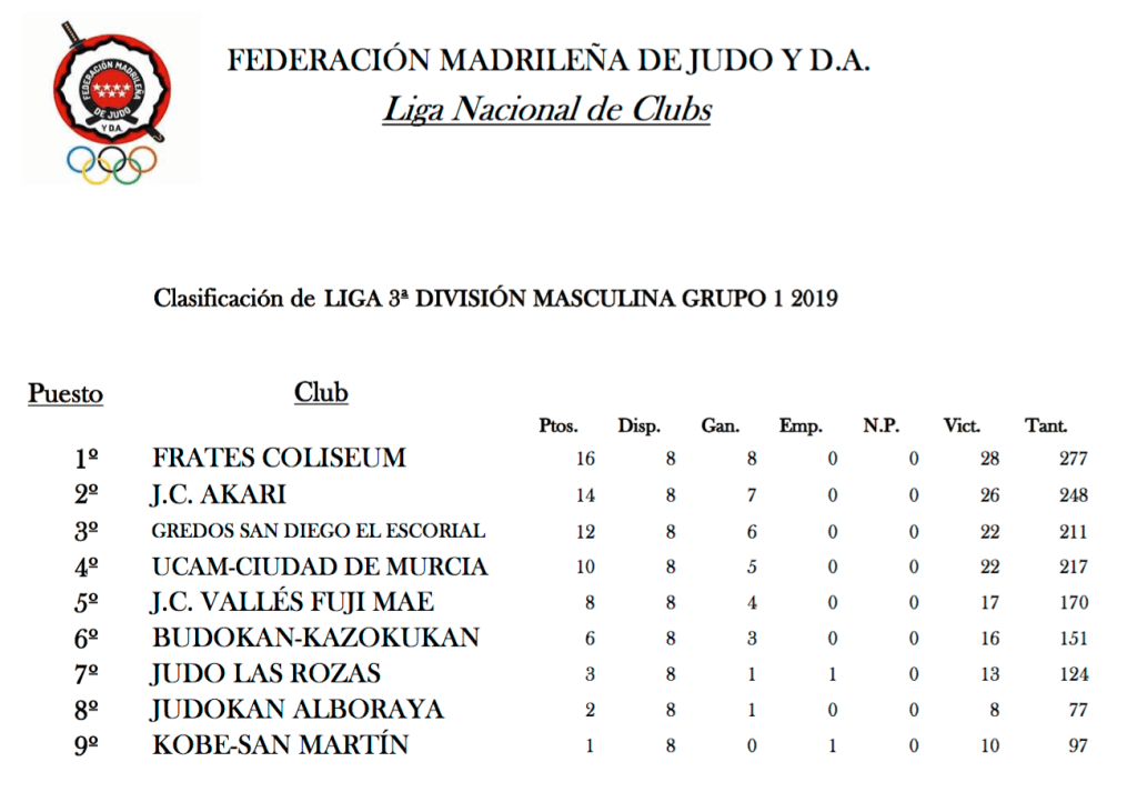 18 may 2019 Clasificación Liga Nacional de Clubs